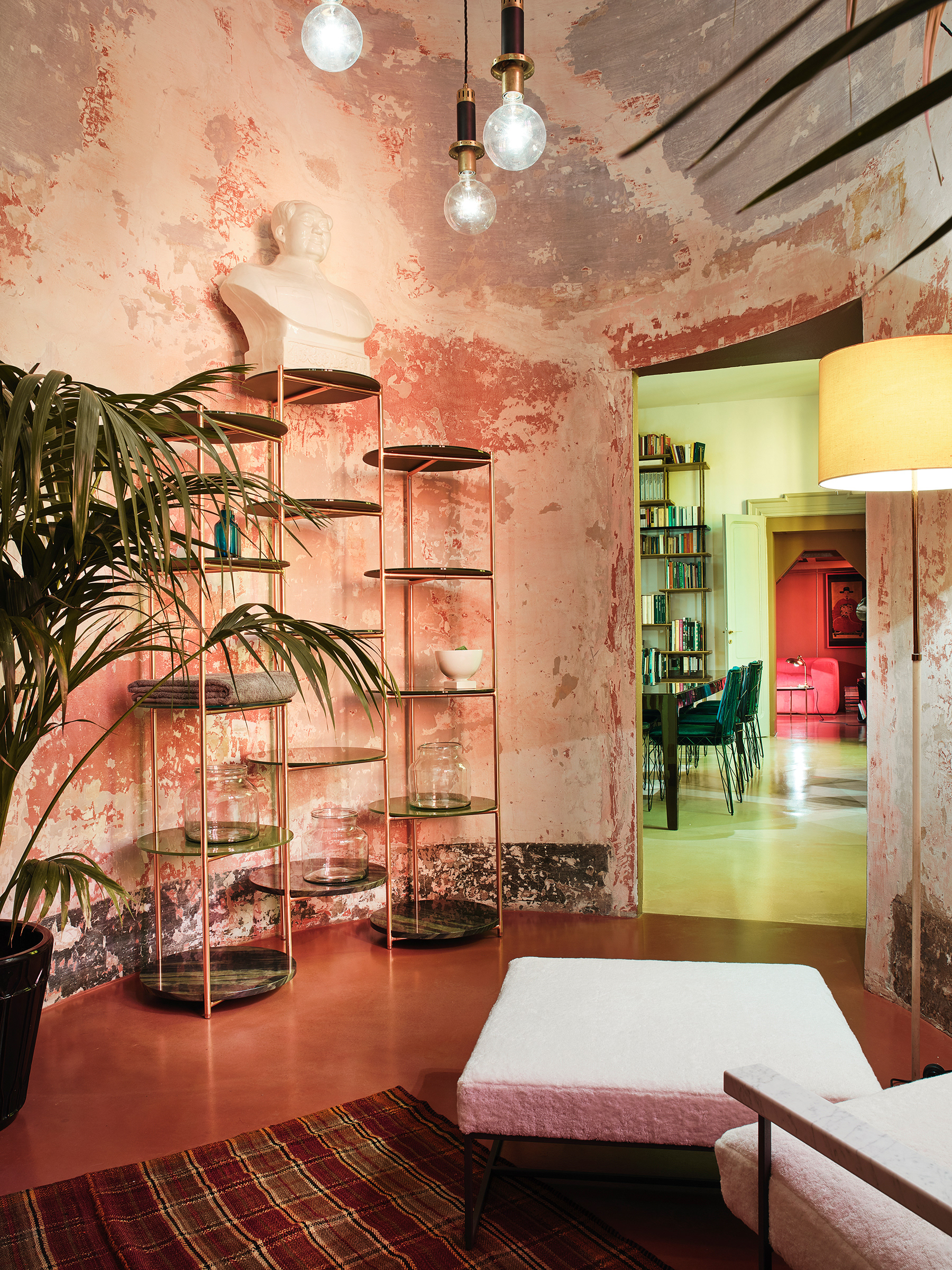 Architect Giovanni Cagnato hosts Epònimo’s furniture collection in the fourth stage of evolution that he designed for his home in via Solferino, appropriately named Domestic Rotations. The rooms of the apartment switch their roles and functions in a rotational movement while offering original compositional and chromatic suggestions for today’s domestic landscape. Eponimo’s pieces are actors in this play, well versed in the art of metamorphosis. New for 2019 are Long Playing, a new family of etagere and small side tables and Big Sur, a coffee table: they both can modify their shape with a rotational movement echoing the theme of the presentation. Last but not least is Nova OW a small textile armchair with monodirectional wheels.